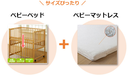 ベビーベッドとサイズぴったりのマットレスの2点セット。