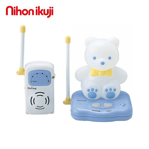 本体のLIGHTボタンを押すと、ランプが点灯します。(AC電源使用時のみ)夜間、赤ちゃんが夜泣きをして目を覚ましたとき、まわりが真っ暗なときは大変不安を抱くものです。そんなとき、クマさんのランプを点灯しておけば赤ちゃんも安心。また、お部屋の電灯をつけずに、クマさんの明かりで赤ちゃんのお世話ができます。