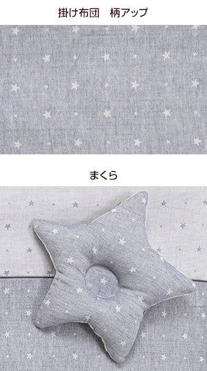 [レギュラーサイズ] ベビー布団8点セット(星柄グレー)オーガニックコットンダブルガーゼ(販売)